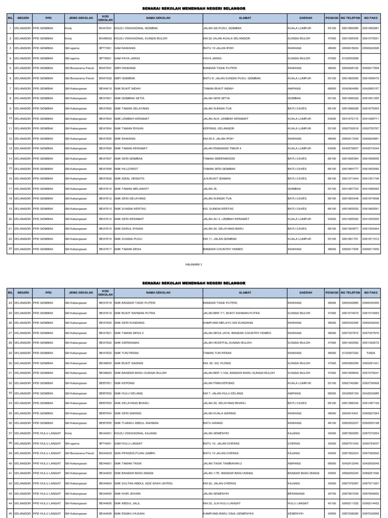 Senarai Nama Sekolah Di Selangor Pdf